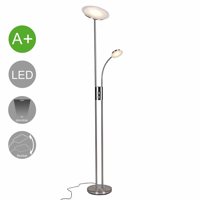 Es gibt jedoch auch stehleuchten, bei welchen das leuchtmittel selbst gewählt werden kann. Praktische fluter mit lesearm für sitzecken im wohnzimmer oder arbeitstische im homeoffice mit diesen anwenderfreundlichen leuchten lässt sich neben der grundbeleuchtung auch zusätzlich noch ein praktisches leselicht einschalten. 5 (1) wofi stehleuchte lacchino antik braun eek: Der deckenfluter erzeugt mit 18 watt 1.620 lumen, die leseleuchte mit 5 watt 450 lumen. Dimmbarer led deckenfluter chris acryl mit kristalleffekt. 19 von 23 kunden fanden das hilfreich war diese bewertung hilfreich? Nachdem ich alles zusammen gebaut habe, leuchtet nur die leselampe, das. Top marken | günstige preise | große auswahl Led stehlampe dimmbar deckenfluter mit leselampe led floor lamp uplight flexibler leselampe 2 flammig|3000k (warmweiß), 8/3w, 640/200l, 30000 stunden, ip20, 180cm (metall bronze) 3,7 von 5 sternen. Da es sich um eine dimmbare lampe handelt, variiert die farbtemperatur zwischen 3000, 4750 und 6500 k. Deckenfluter mit dimmer bei lionshome: Fünf davon sind starr nach oben gerichtet und fungieren als. Die lichtfarbe beider lampen ist ein angenehm wohnliches warmweiß.